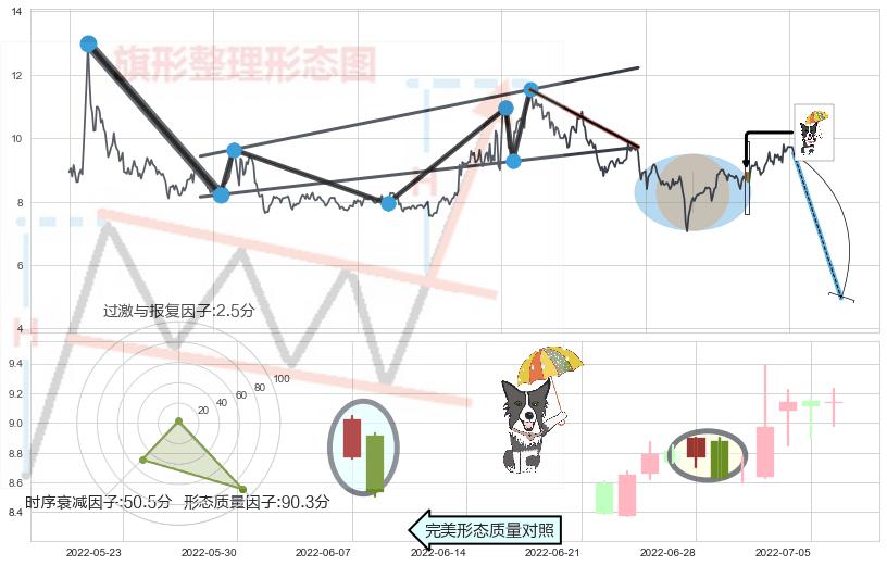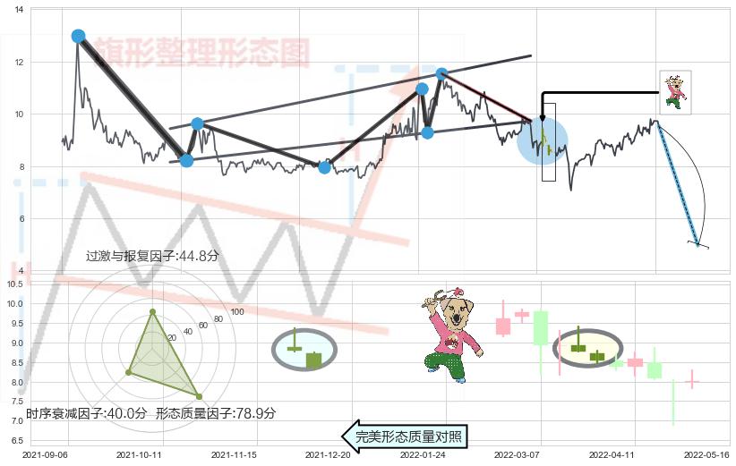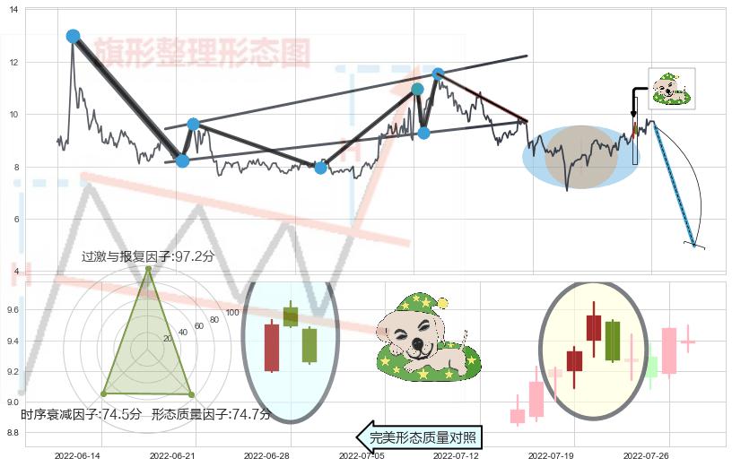 ➢ 看跌(高位倒锤头)流星线 🔜 升旗形支撑破位转换阻力下跌 综合量化分数:47.41 【中性】