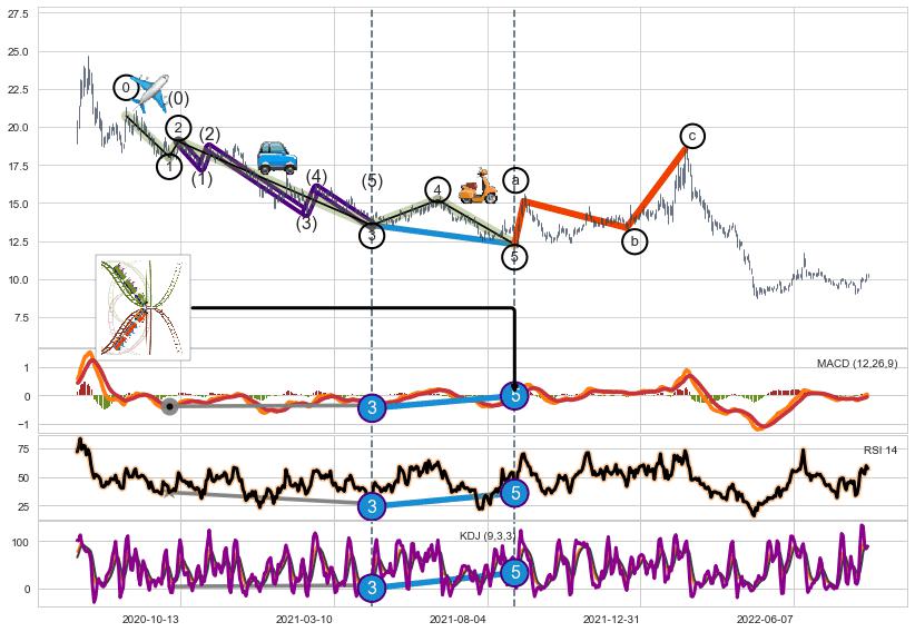 ➣ MACD, RSI, KDJ走势都出现【常规背离】反转信号增强