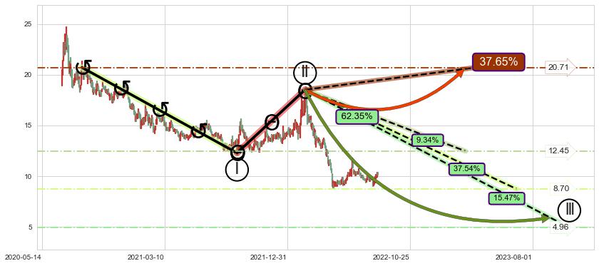 ➣ 大趋势循环浪继续向下概率62.35%