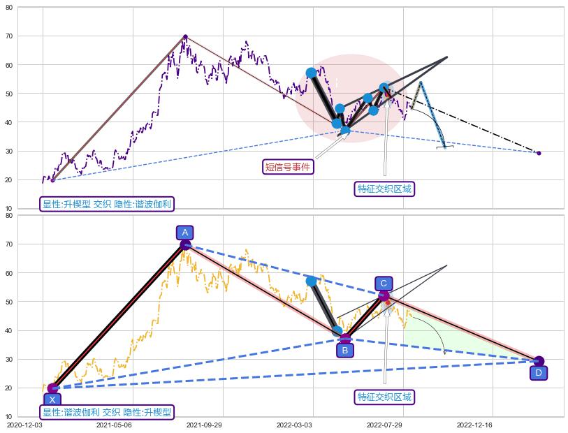 ➢ 升楔型属【短级别信号事件】谐波伽利属【长级别信号事件】长短周期组合信号事件, 短长事件长度比22.50%