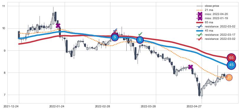 ➣ 45小时均线于(2022-05-24: 8.22)形成【金叉】基于【金叉历史模型】预测金叉后最高波峰价格: 10.48, 金叉后最高价格9.73,尚未达到预测最高波峰价格, 预期继续上涨