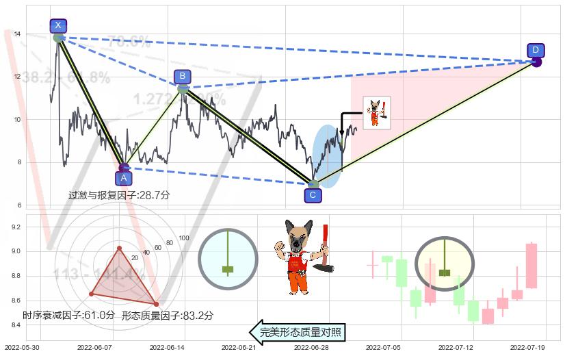 ➢ 曙光初现形态 🔜 谐波赛福下沉击穿c上涨拐点 综合量化分数:55.29 【偏多】