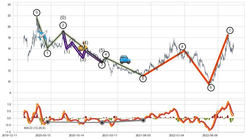 ➢ 波浪理论:猜想达到c点后小反弹终止反转下跌 → 下跌 → 【拐点】临近 → 阶段均值回复结束后继续大周期趋势跟踪