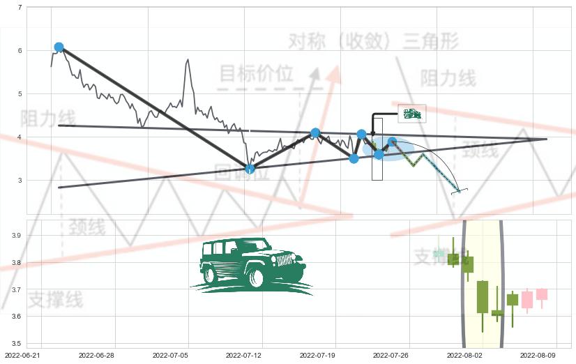 ♘ 支撑价格位3.582,可信任强度96.61%,距离最后交易2022-08-12形成的收盘价格3.890相差 -7.93%