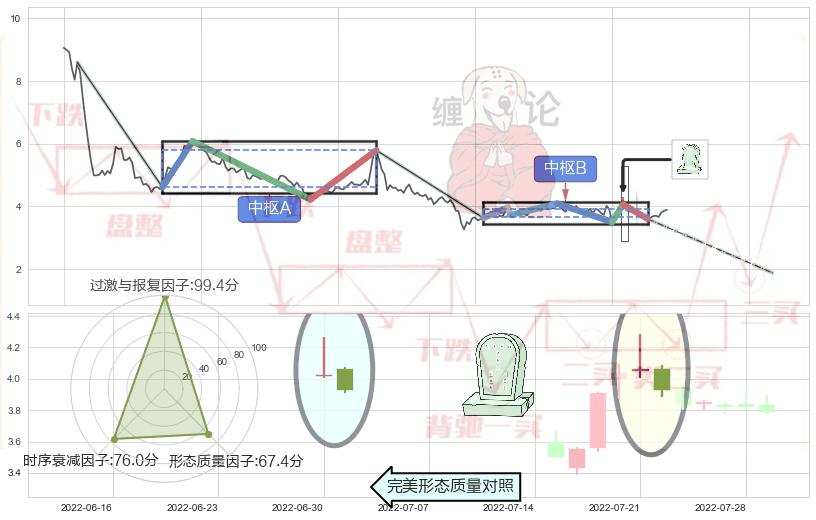 ➢ 墓碑十字线(墓碑线) 🔜 缠论中枢点破位中枢B支撑下拉 综合量化分数:43.54 【偏空】