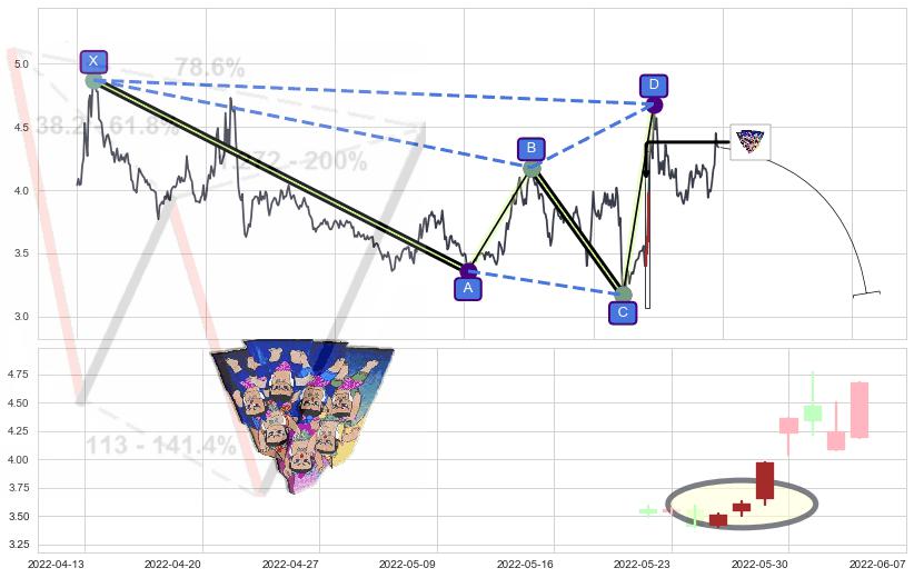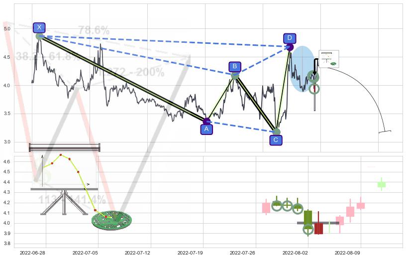 ➣ 谐波赛福:已到达d点:猜想c拉升到达d点后泄力性下沉下跌(均值回复)