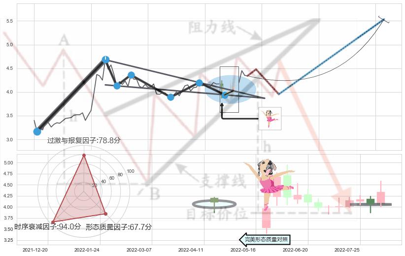 ➢ 【买1】: 激进型 买点 →(2022-08-05: 4.03 )形成突破降🚩楔型【整理】形态