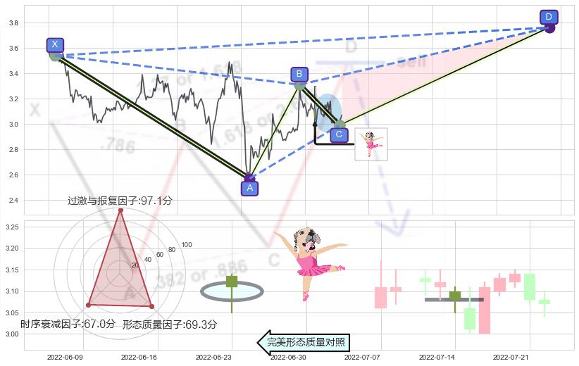 ➣ 未完成【蝴蝶】形态起点X: 2021-09-07, 已到达C点: 2022-08-10, 预测最终D点: 2023-03-28, 共387交易日