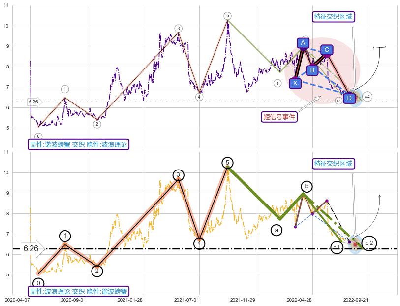 ➢ 谐波螃蟹属【短级别信号事件】升楔型属【长级别信号事件】长短周期组合信号事件, 短长事件长度比29.39%