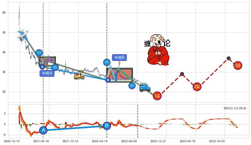 ➢ 缠论中枢点:猜想破位中枢B后持续下拉 → 下跌 → 破位中枢B支撑 → 持续趋势跟踪