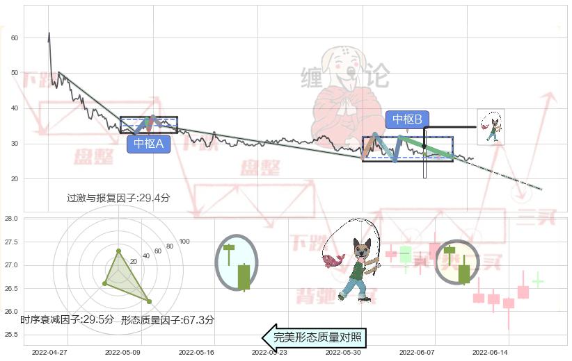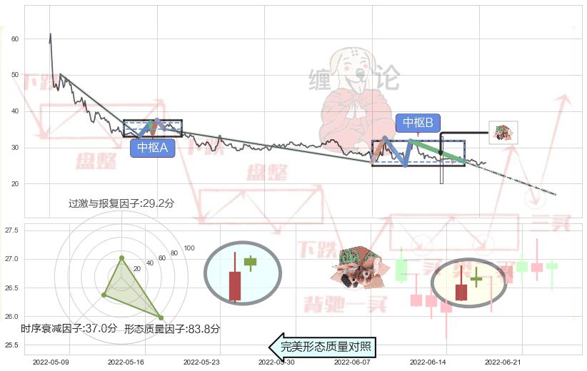 ➣ 下降插入线(坠落线) + 缠论中枢点破位中枢B支撑下拉信号叠加后【信号初始稳固度】中等,【看空】信号叠加【可信度影响中等】