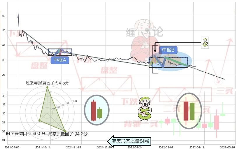 ➢ 下跌身怀六甲 🔜 缠论中枢点破位中枢B支撑下拉 综合量化分数:45.75 【偏空】