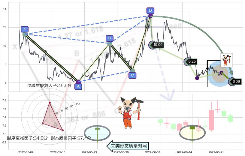 ➢ 🕰 价格走势在2022-06-14至2022-06-14期间形成锤头线(锤子线),残存影响值:3.95
