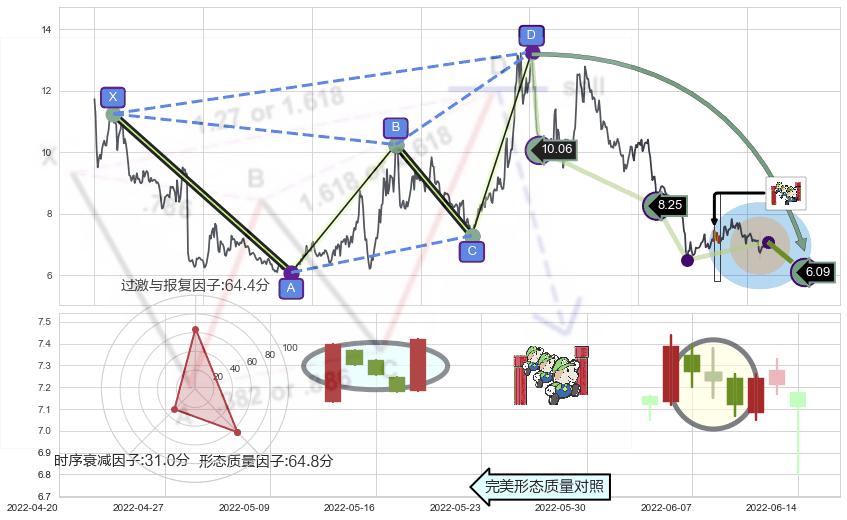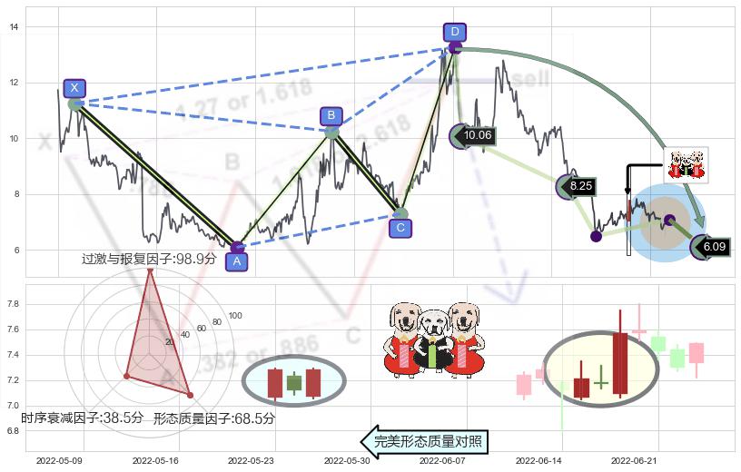 ➢ 双针探底 🔜 谐波蝴蝶临近目标❸支撑上涨 综合量化分数:52.37 【中性】