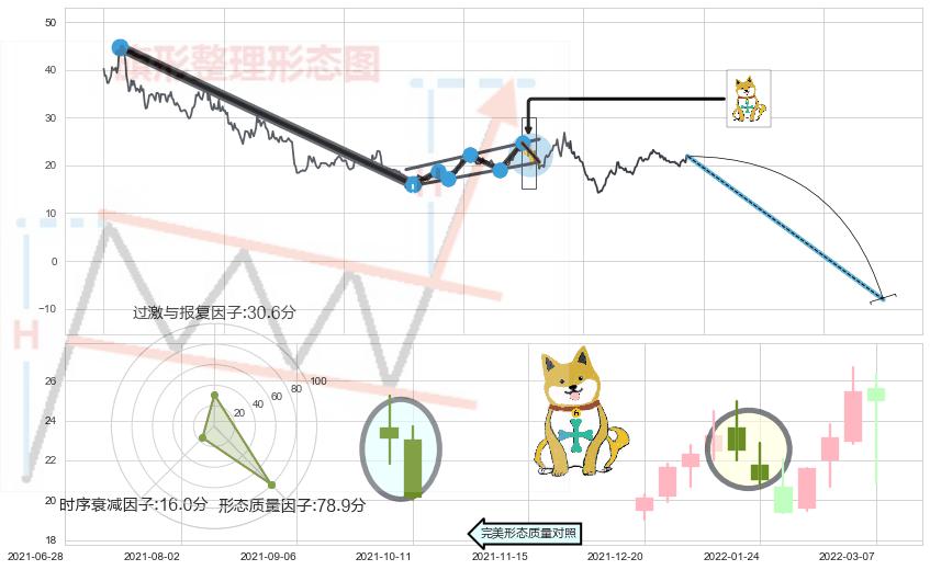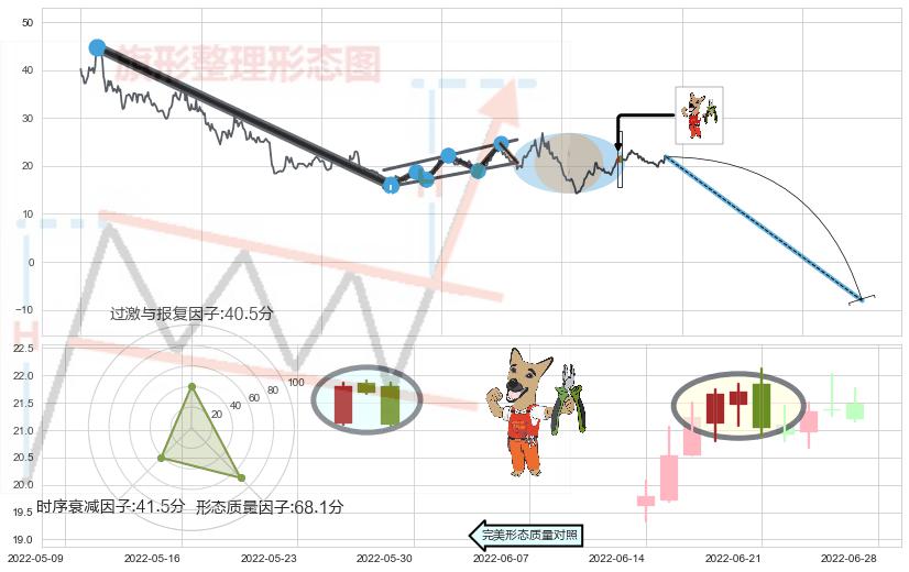 ➢ 看跌(高位倒锤头)流星线 🔜 升旗形支撑破位转换阻力下跌 综合量化分数:40.75 【偏空】