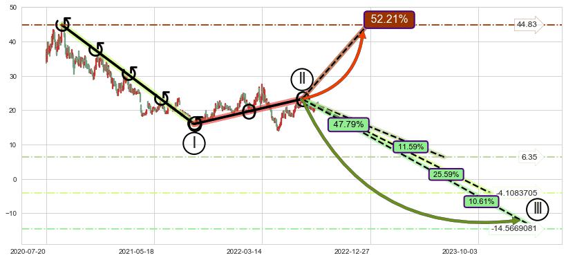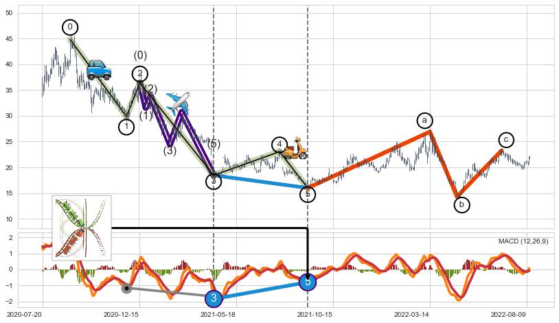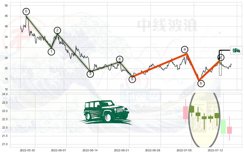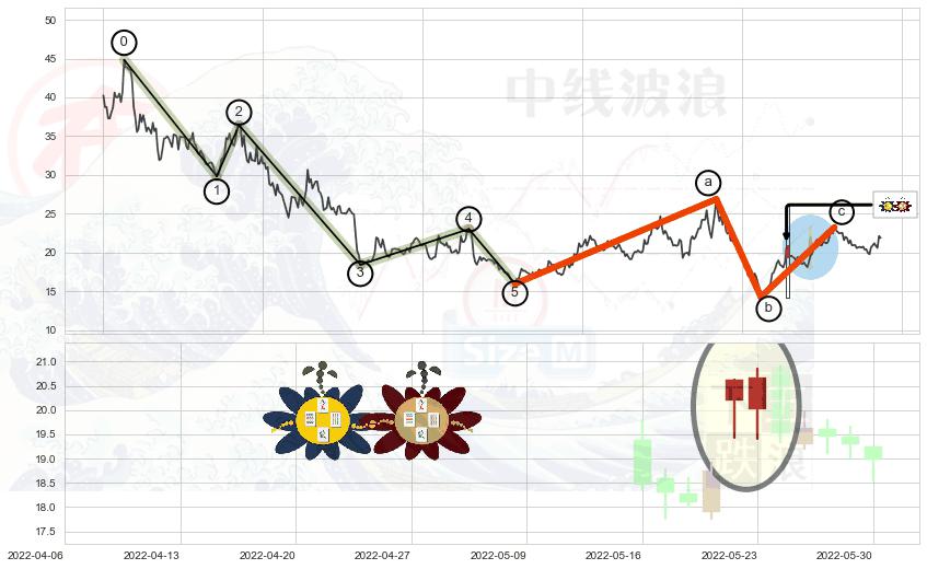 ➣ 波浪理论:猜想达到c点后小反弹终止反转下跌 → 下跌 → 【拐点】临近 → 阶段均值回复结束后继续大周期趋势跟踪