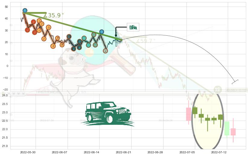 ➢ 低点影线(2022-07-07: 21.88 )→再次回踩→第一根k线高点(2022-06-29: 22.28 )