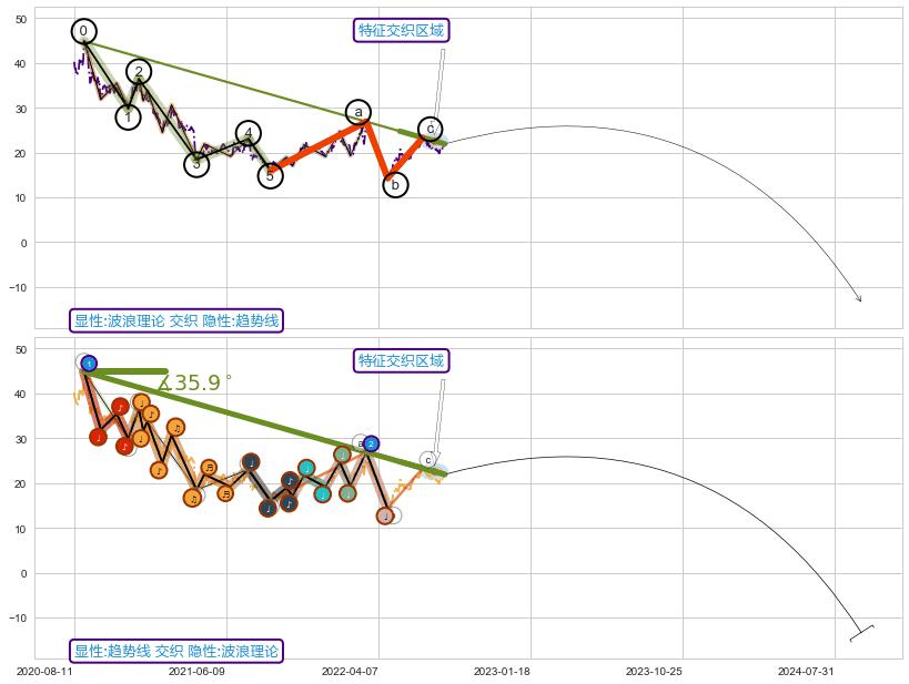 ➢ 波浪理论与趋势线信号事件周期长度级别相同,同周期信号事件
