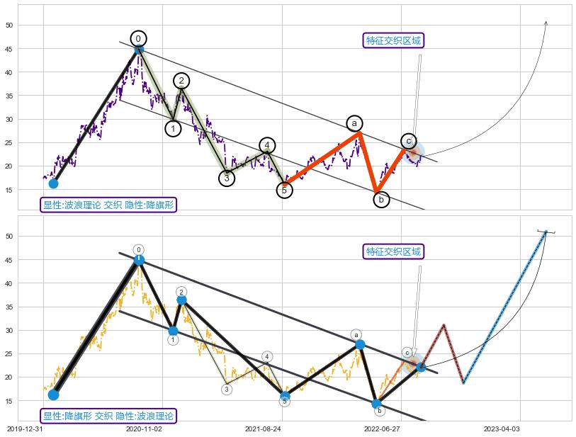 ➢ 波浪理论与降旗形信号事件周期长度级别相同,同周期信号事件