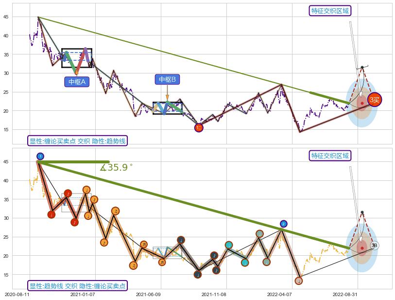 ➢ 【中枢A】:2020-11-02-2020-12-22,中枢由5笔构成,共37交易日, ZG=35.44, ZD=33.33