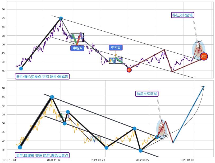 ➢ 缠论买卖点:下降缠:临近3买-猜想击穿突破3买后延续上涨趋势(大周期趋势均值回复后小周期持续趋势跟踪)