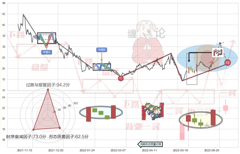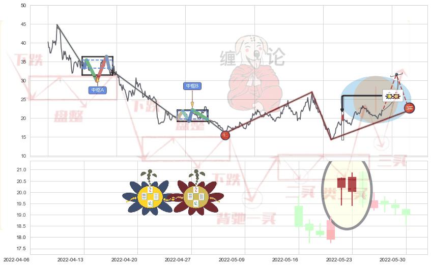 ➣ 【中枢B】:2021-05-24-2021-07-26,中枢由5笔构成,共45交易日, ZG=21.90, ZD=19.79
