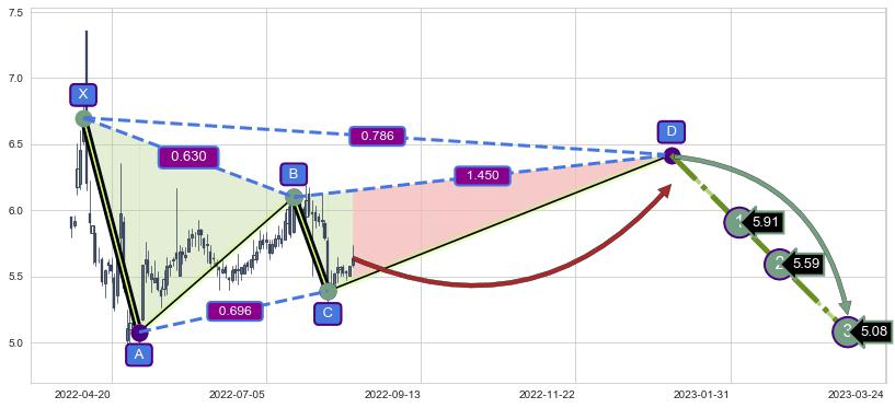 ➣ 未完成【伽利】形态起点X: 2022-04-06, 已到达C点: 2022-08-02, 预测最终D点: 2023-01-04, 共191交易日