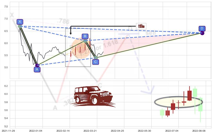 ➣ D点拟合预测价格6.42,距离最后交易收盘价格5.64相差 +13.82%