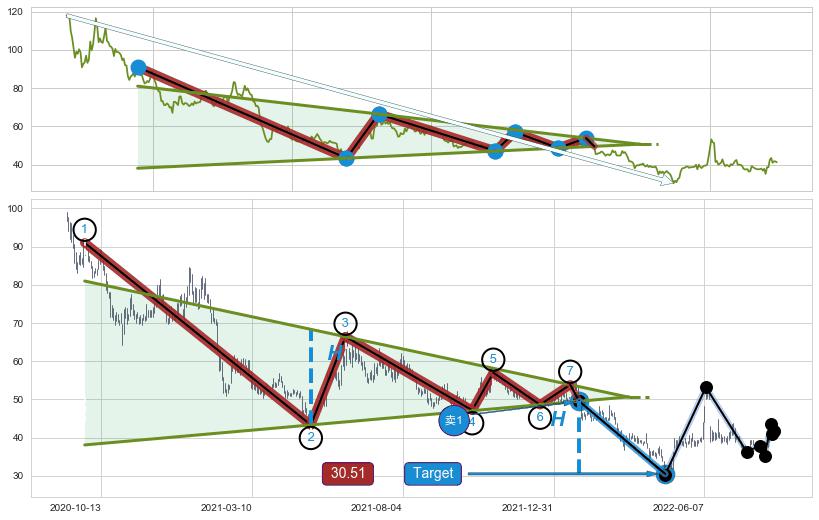 ➣ 【已确认突破】下降【对称】三角形整理 起点:2020-09-18,突破点:2022-01-26,形态共329交易日