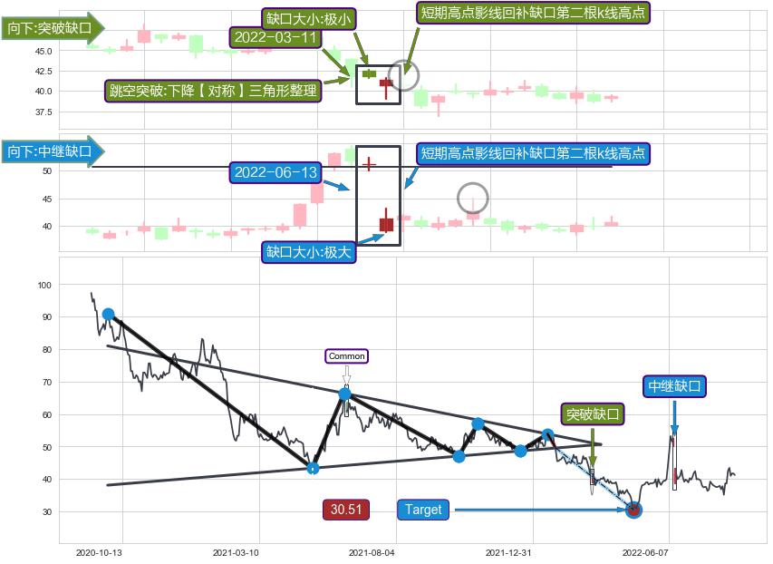 ➢ 2022-06-13形成:向下跳空【中继】缺口