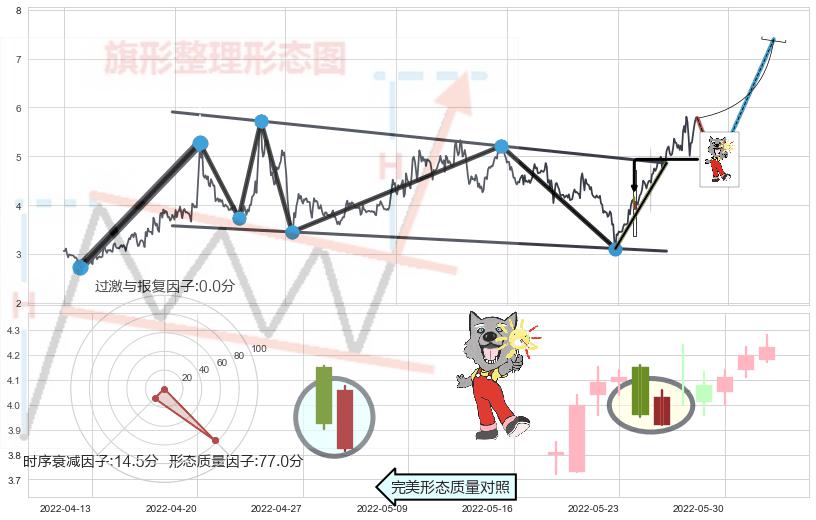 ➢ 【买1】: 激进型 买点 →(2022-07-05: 4.86 )形成突破降⚑旗形【整理】形态