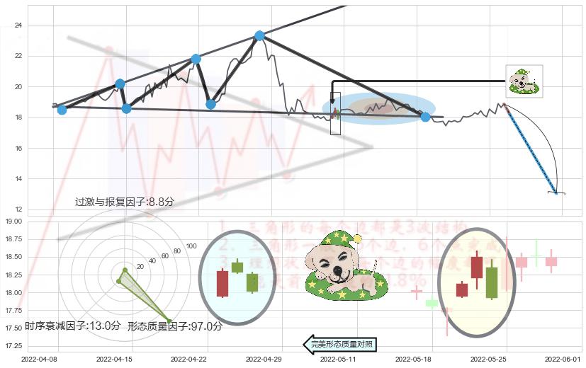 ➢ 🕰 价格走势在2022-05-20至2022-05-24期间形成黄昏之星(夜星),残存影响值:-2.26