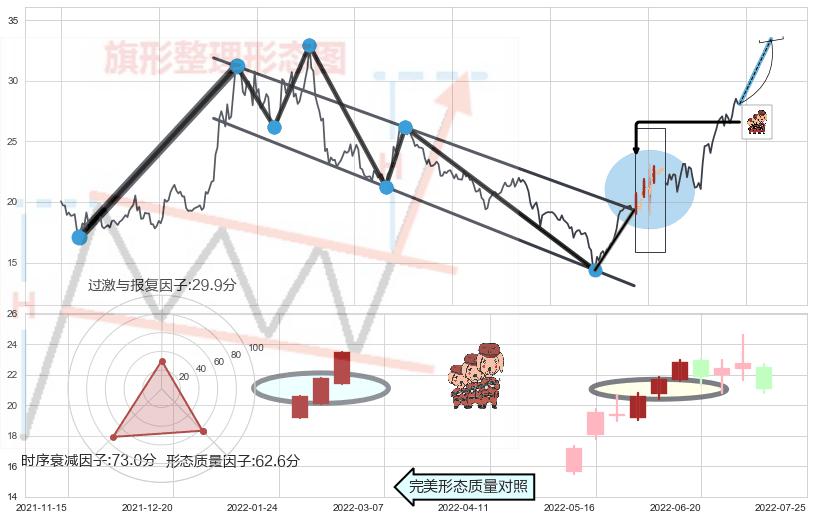 ➢ 中流砥柱形态 🔜 降旗形阻力突破转换支撑上涨 综合量化分数:53.14 【中性】