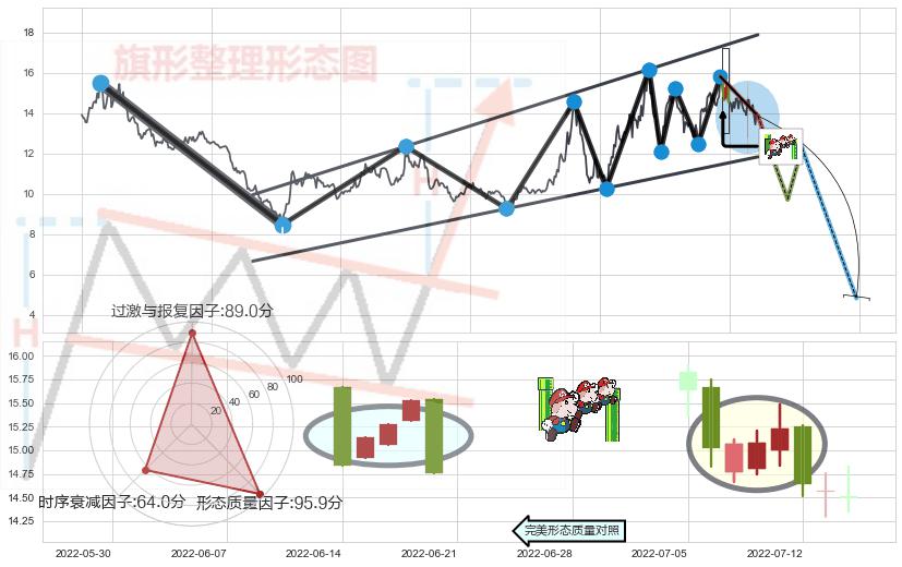 ➢ 🕰 价格走势在2022-07-06至2022-07-12期间形成下降三部曲(降势三鹤),残存影响值:-6.47