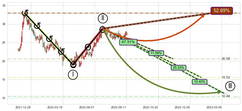 ➣ AI预测: 假定反转继续,第❷价格目标位置(2022-08-15, 27.56)