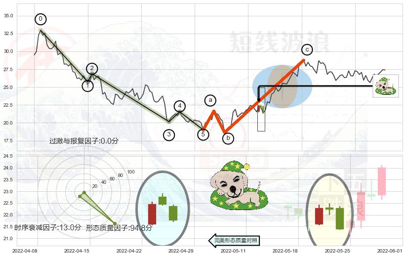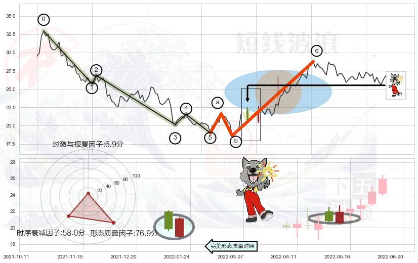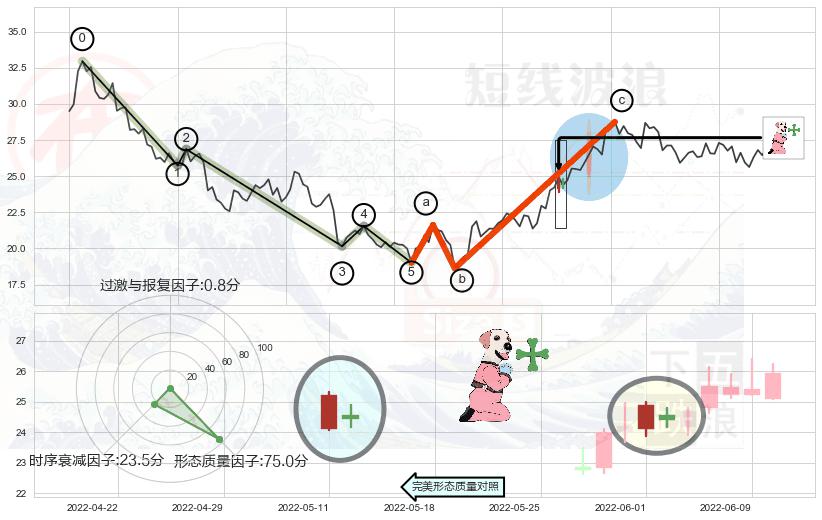 ➢ 射击之星形态 🔜 波浪理论c点反弹终止反转下跌 综合量化分数:47.50 【中性】