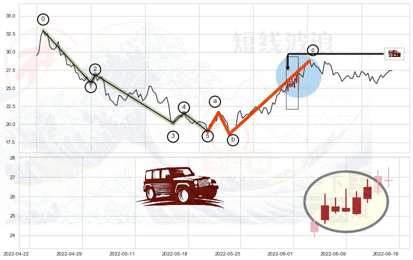 ➢ 波浪理论:猜想击穿突破c点后继续上涨 → 上涨 → 机会信号 → 小趋势跟踪