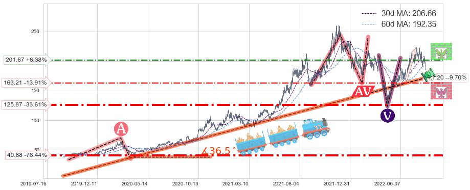 ♘ 阻力价格位201.67,可信任强度54.52%,距离最后交易2022-08-12形成的收盘价格189.58相差 +6.38%