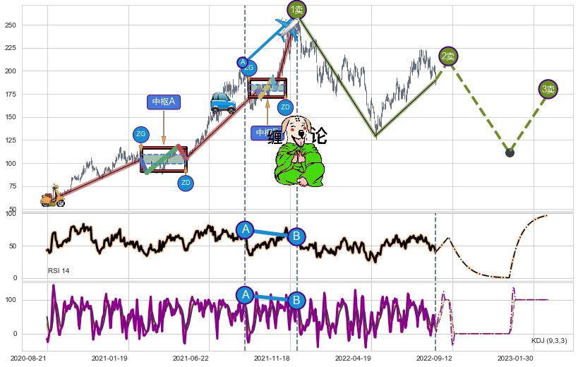➣ 缠论买卖点:上升缠:猜想2卖趋势延续,蓄力下跌至3卖(大周期趋势均值回复中的小周期趋势跟踪)