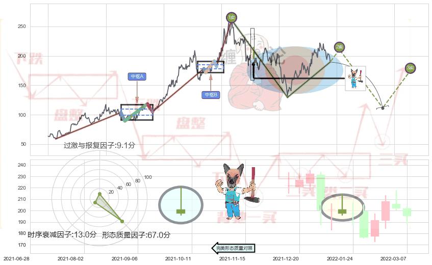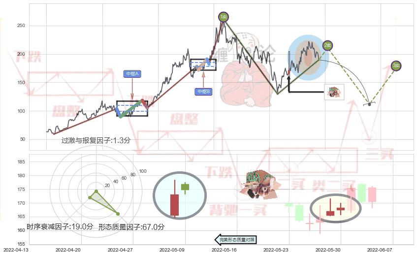 ➣ 看跌(高位倒锤头)流星线 + 缠论买卖点2卖回调下跌至3卖信号叠加后【目标达成率】中等,【看空】信号叠加【存续影响中等】
