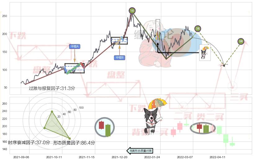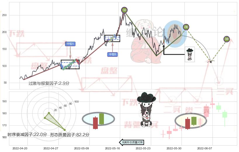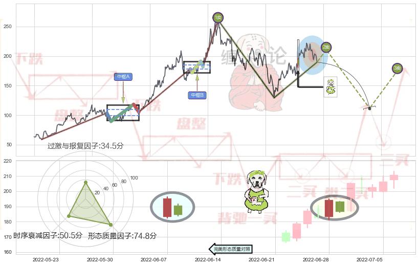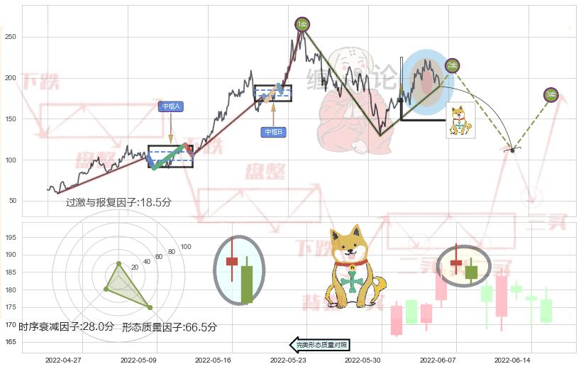 ➢ 看跌(高位倒锤头)流星线 🔜 缠论买卖点2卖回调下跌至3卖 综合量化分数:47.58 【中性】