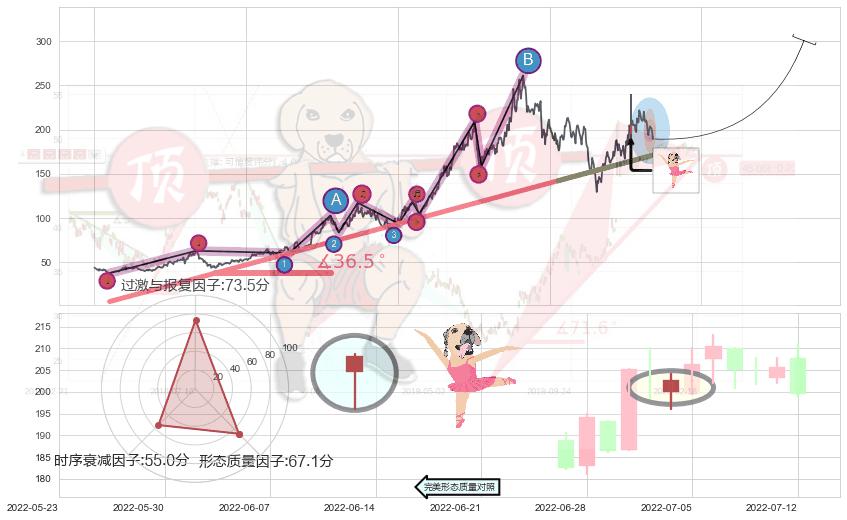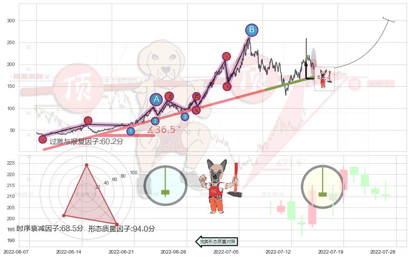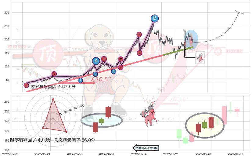 ➢ 🕰 价格走势在2022-07-15至2022-07-15期间形成看涨(低位)倒锤头线,残存影响值:2.43