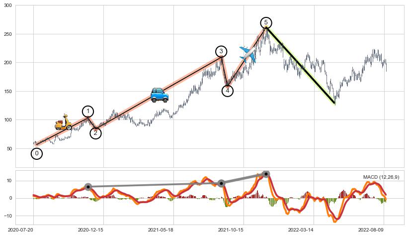 ➣ 第一, 三, 五浪上涨动能逐渐【增强变大】,趋势不断加固