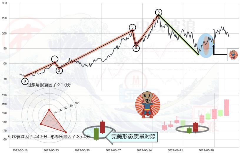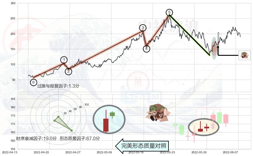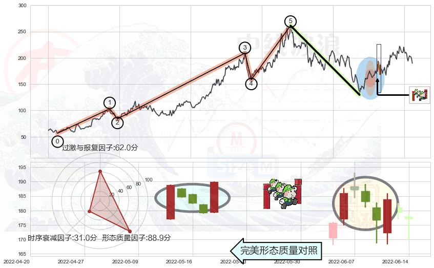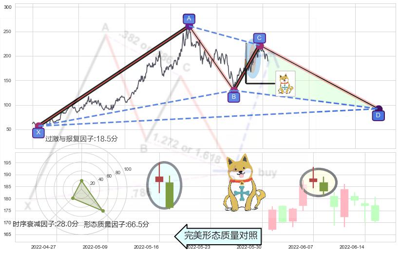 ➢ 看跌(高位倒锤头)流星线 + 波浪理论击穿破位C点继续下跌信号叠加后【反向回撤率】中等,【看空】信号叠加【存续影响中等】