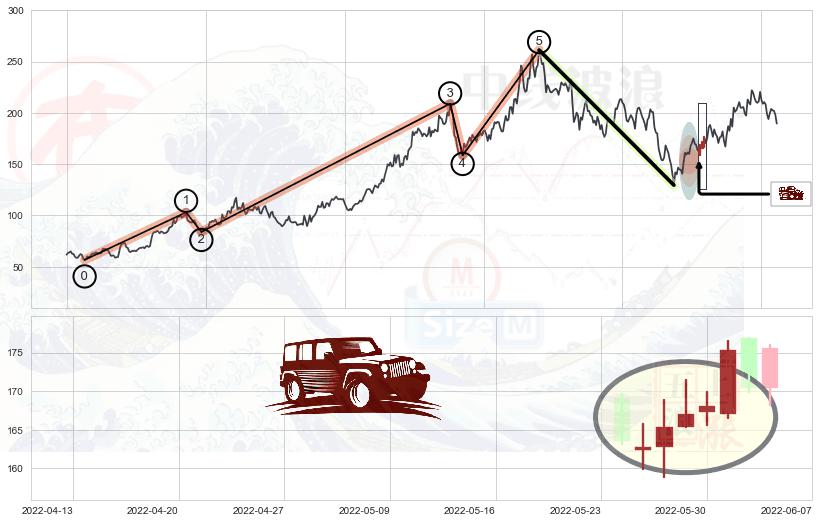 ➣ 波浪理论:猜想击穿破位c点后继续下跌 → 下跌 → 风险信号 → 小趋势跟踪