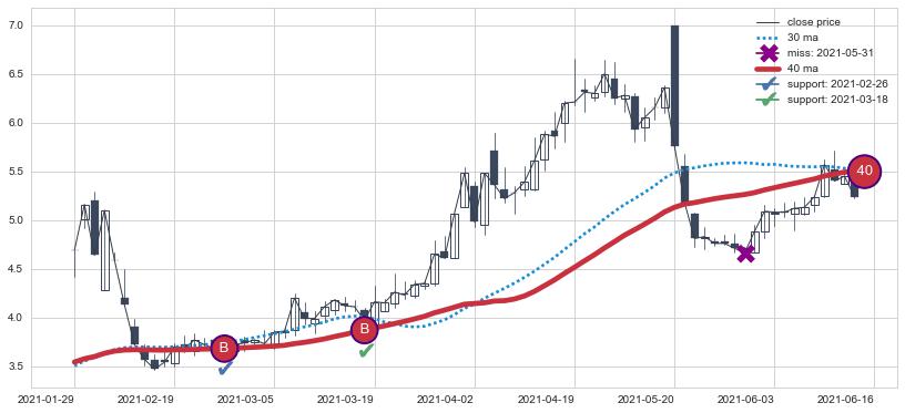 ➢ 最优均线组合共正确确认支撑阻力信号7处,正确确认率 70.00%