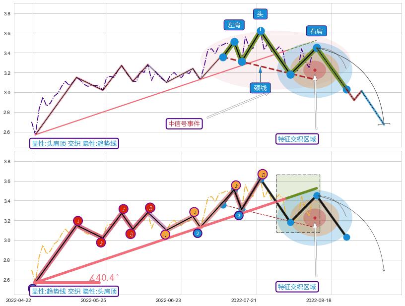 ➢ 头肩顶属【中级别信号事件】趋势线属【长级别信号事件】中长周期组合信号事件,中长事件长度比47.76%