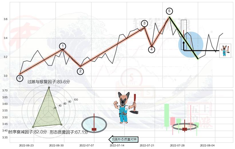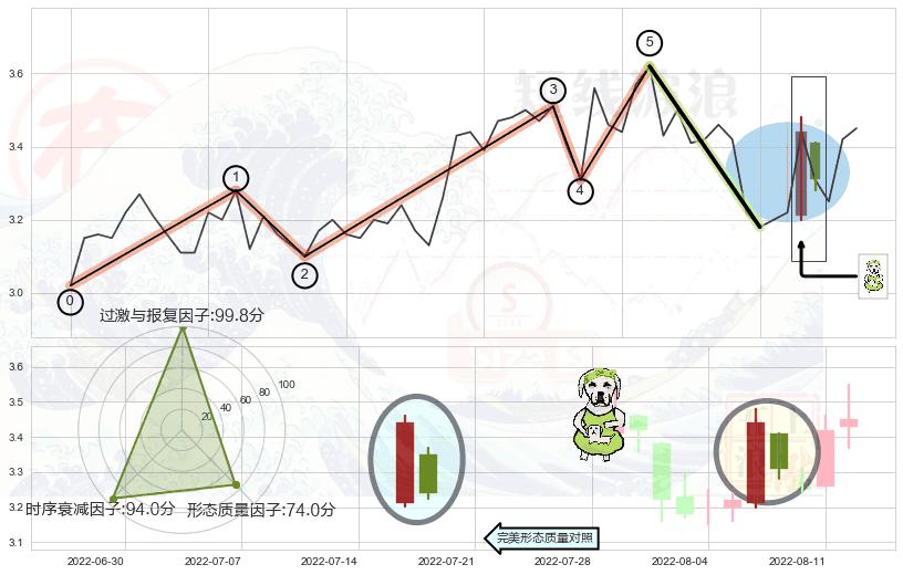 ➣ 【未确认突破,预测即将形成突破】头肩顶起点:2022-06-30, 预测突破点:2022-08-24,形态共40交易日