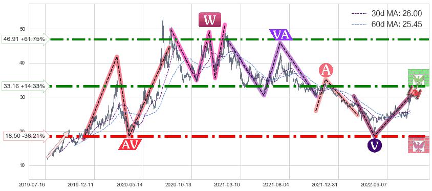 ♘ 阻力价格位33.16,可信任强度93.79%,距离最后交易2022-08-12形成的收盘价格29.00相差 +14.33%