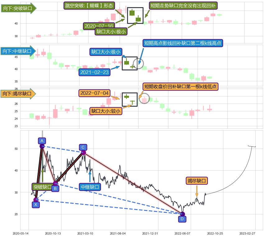 ➢ 2022-07-04形成:向下跳空【竭尽】缺口